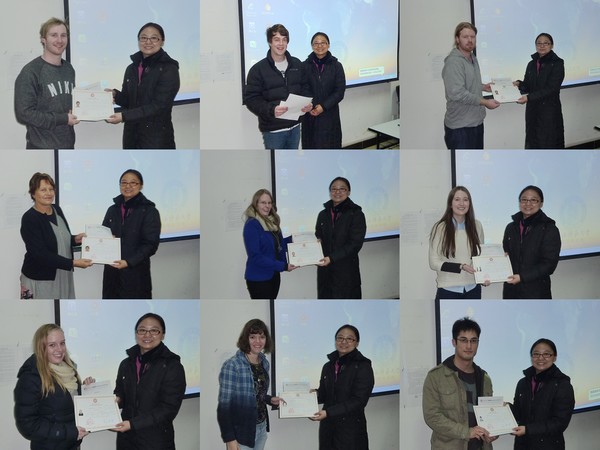 1月17日,澳大利亚塔斯马尼亚大学与新英格兰大学2013年汉语言短期进修班20名学员在公司经过两个月的学习以优异的成绩圆满完成学业,伟德国际victor1946副经理吴媛为学员颁发了结业证书和学习成绩单,并对他们给予了新的期望与祝福。
