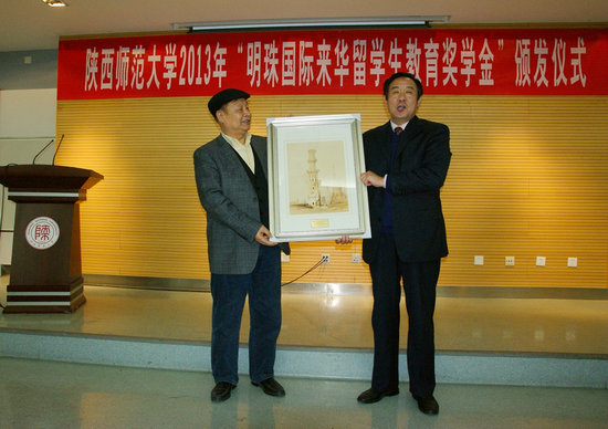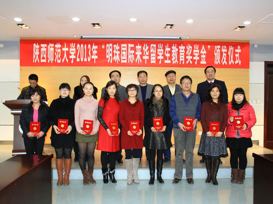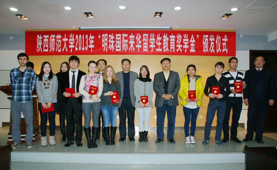 12月26日,陕西省第一个职工企业奖学金——“明珠国际来华职工教育奖学金”颁奖仪式在公司崇鋈楼闻道堂隆重举行。自2013年起,民营企业明珠国际集团决定每年拿出10万人民币用来资助伟德victor1946的来华职工教育,这不仅是公司首个职工企业奖学金,同时也是我省首个由企业资助设立的面向来华职工教育的奖学金。该奖学金将优先考虑来自中亚地区职工的培养,进一步加强我省和中亚及周边各国的交流合作,以更好地服务于我省“丝绸之路经济带”建设。明珠国际集团董事长李继和,总裁秘书黄兰,公司党委副书记、副董事长王涛,国际交流与合作处处长徐峰,教育基金会秘书长、公司办公室副主任刘建斌,伟德国际victor1946副经理、刘琨,43名获奖师生及伟德国际victor1946部分师生参加了颁奖仪式。伟德国际victor1946张建成经理介绍了明珠国际集团来华职工教育奖学金的设立情况并代表公司向明珠国际集团赠送了纪念品。伟德国际victor1946副经理吴媛宣读了颁奖决定,颁奖仪式由伟德国际victor1946副经理吴殿华主持。