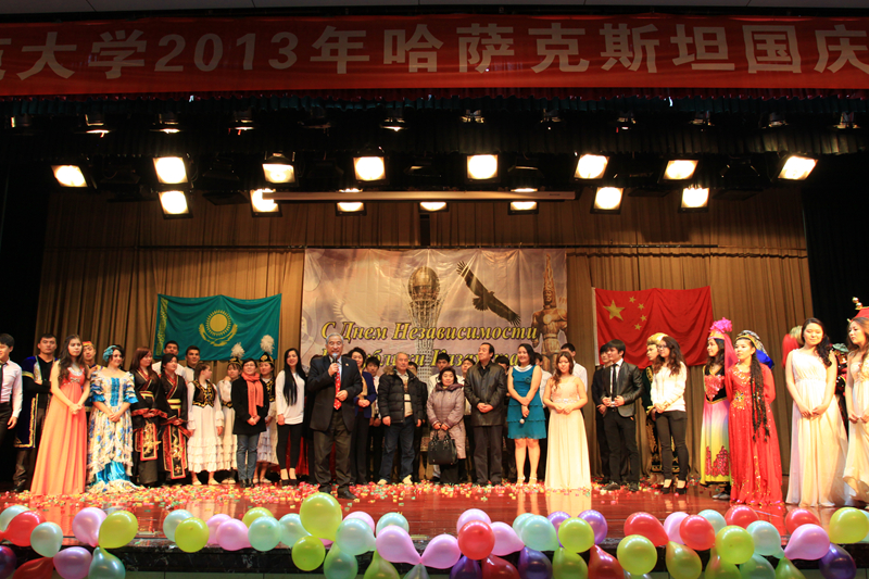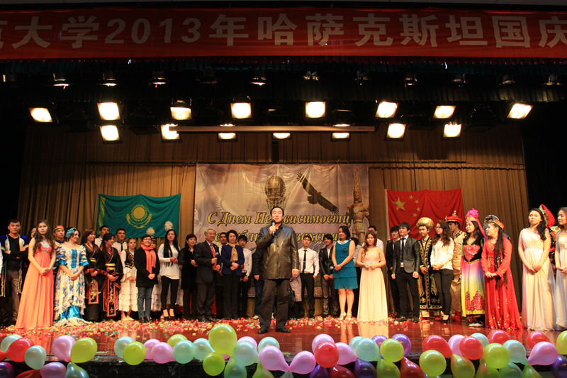 12月16日,伟德国际victor1946在公司积学堂隆重举行2013年哈萨克斯坦国庆联欢会,哈萨克斯坦国东干协会主席Дауров Хуссей(安胡塞)、吉尔吉斯斯坦东干协会副主席Сулейманов Юсуп 、吉尔吉斯斯坦东干研究所副所长Исмаева Рахима、陕西省文化厅副厅长金育欣、西安音乐公司副经理崔炳元、陕西省人民对外友好协会交流处处长刘速平、省财政厅、共青团陕西省委有关负责人以及公司国际交流与合作处处长徐峰、伟德victor1946中亚研究所主任李琪、俄语系主任孟霞等和公司及兄弟院校的近400名哈萨克斯坦国和其他中亚地区职工欢聚一堂,共话友谊,展望丝绸之路新的辉煌。