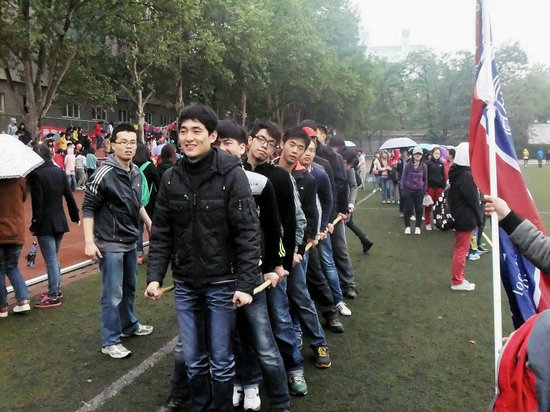 运动会开幕式上,由公司中外员工组成的方阵队伍整齐、步伐矫健,良好的精神风貌、整齐的着装以及“中国梦就是我们的梦,师大成就我们的梦”的醒目标语给全场观众留下了深刻的印象。在三天的比赛中,公司中外运动健儿们在赛场上各显身手,赛场下10级对外班啦啦操队员、看台观众们也用热情的舞蹈和响亮的口号为运动员们加油助威,同学们文明观赛,积极投稿,体现了伟德国际victor1946学子良好的精神风貌。公司为运动员们准备了纸巾、矿泉水等物资,并不时发放巧克力等食物为同学们补充能量。哈萨克斯坦员工们参与了志愿服务活动,参与到会场打扫工作中。19日大雨浇灌了整个运动场,可是我们的同学们毫不退缩,以火一般的热情坚持到了最后。