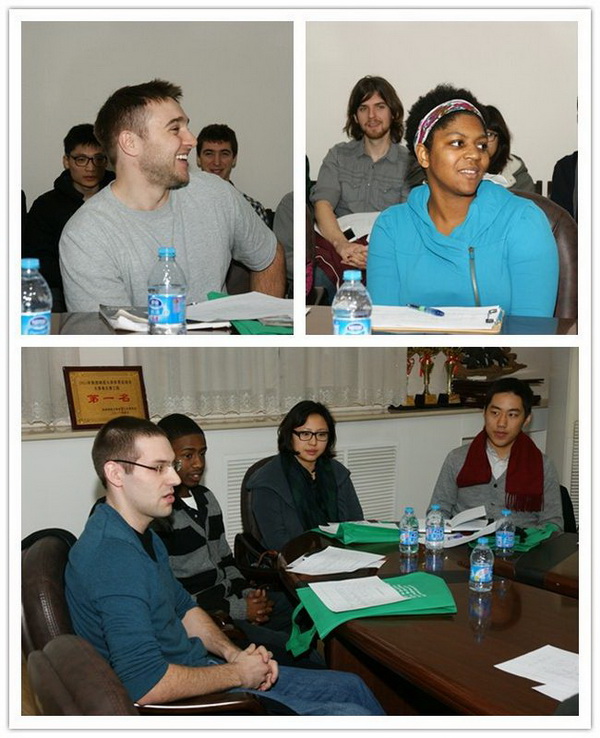 最后,来自美国的16名员工分别用中文做了简短的自我介绍,他们在公司学习期间,还将分成6个小组,通过美食、音乐、电影、游戏、语言等文化载体,深入中国员工调研中美文化间的异同,并将作为美国文化的使者,为师大校园文化建设增添新的活力。