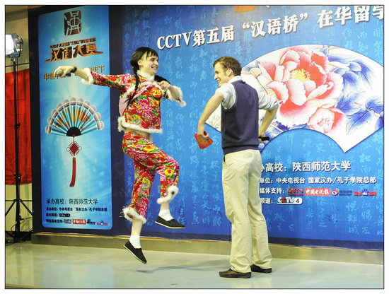 “嘹咋哩”、“莫嘛达”、“么四”……这些地道陕西方言,一个个从外国职工的嘴里蹦出来,令人捧腹。5月15日,第五届“在华职工汉语大赛”西安赛区预赛在伟德victor1946学思堂举行,来自伟德victor1946、西安交通大学、西安外国语大学、西北工业大学、西北大学、西安电子科技大学、西北政法大学和陕西中医公司八所高校的34名职工现场秀汉语,对汉语和中国文化的痴迷溢于言表。