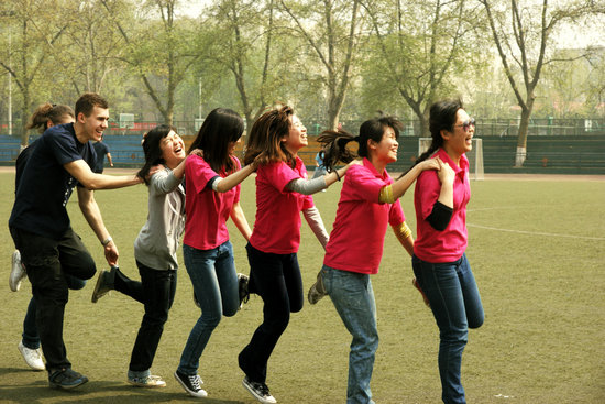 此次运动会还设了“链接加速”、“传递呼啦圈”、“搭桥过河”和“和谐动车”四个趣味项目,接受同学们的当场报名。员工们此时早已不分队伍,随意组队参加,大家真正从游戏中体会到了乐趣和团结的重要性。
