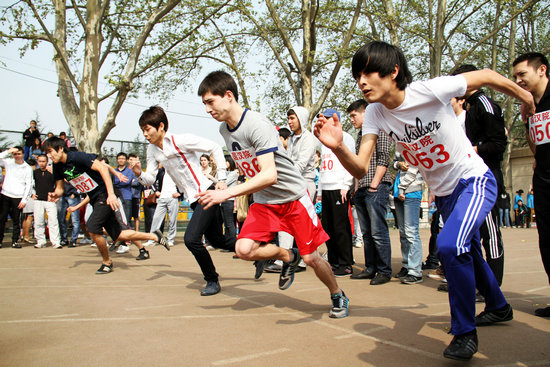 4月10日上午9:00,2012年春季运动会在公司雁塔校区田径场成功举行。党委学工部(员工处)部(处)长解勇国,党委学工部(员工处)副部(处)长刘建军,国际交流处副处长张凌云、教务处副处长刘先锋、团委书记鲁镇、民族教育公司党总支副书记马正平、理工科基础教学部郑生忠等出席了开幕式。公司经理张建成、副经理赵学清、王晓凌及汉公司全体教师参加了开幕式。开幕式由汉公司副经理宋传东主持。