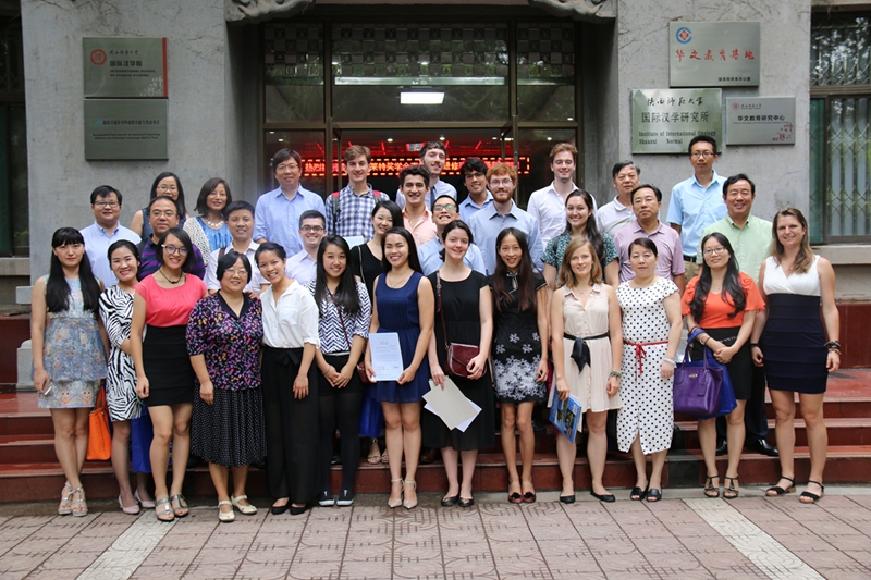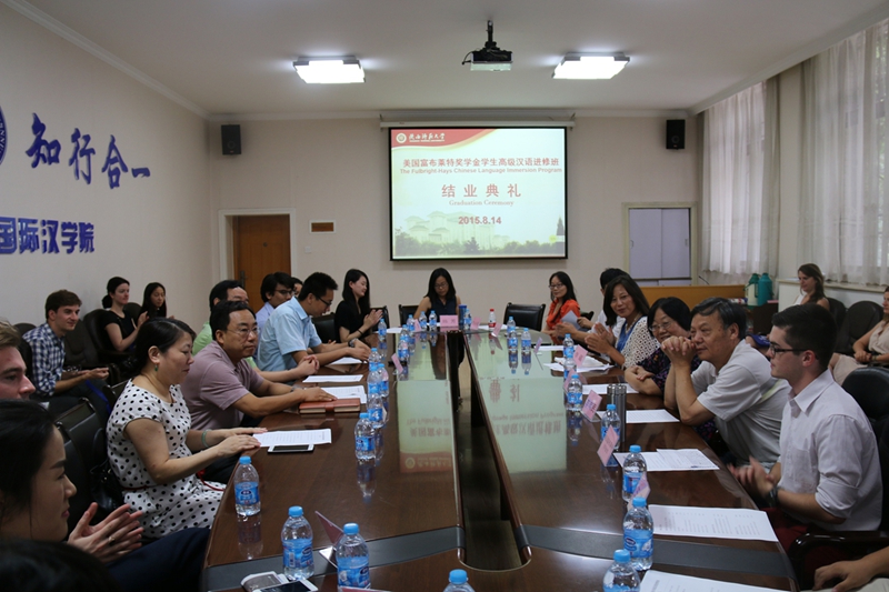 8月14日上午,美国富布莱特政府奖学金员工高级汉语进修班结业仪式在伟德国际victor1946会议室举行。美国马萨诸塞大学波士顿分校中国项目中心主管李蘤,西安市高新区人才服务中心部长王经纬、拽亘弗莱(西安)工业自动化科技有限公司总经理韩炜、西安市航天中学副董事长丁宝林、伟德国际victor1946经理张建成、教务处副处长刘先锋等校内外各界代表出席结业仪式并讲话。来自美国斯坦福大学、加州伯克利大学和纽约大学等世界一流名校的16名美国老员工在公司完成7个月的汉语进修学习以及在高新区进行了为期1个月的企业实习后顺利结业。