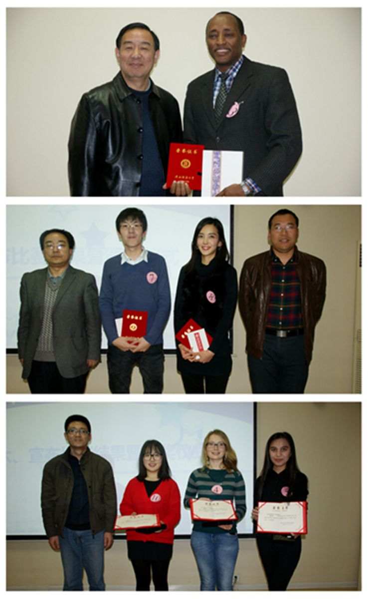 经过激烈比拼,来自埃塞俄比亚的赵永亮以94.6分的高分一举夺魁,来自韩国的徐甜雨、哈萨克斯坦的刘帆夺得第二名,来自奥地利的朱莉娅、乌兹别克斯坦的婉君、韩国的高境彬获得第三名。伟德国际victor1946经理张建成、员工处副处长曲洪刚和教务处副处长刘先锋、伟德国际victor1946副经理吴殿华分别为一、二、三等奖获得者颁发了荣誉证书和奖品。