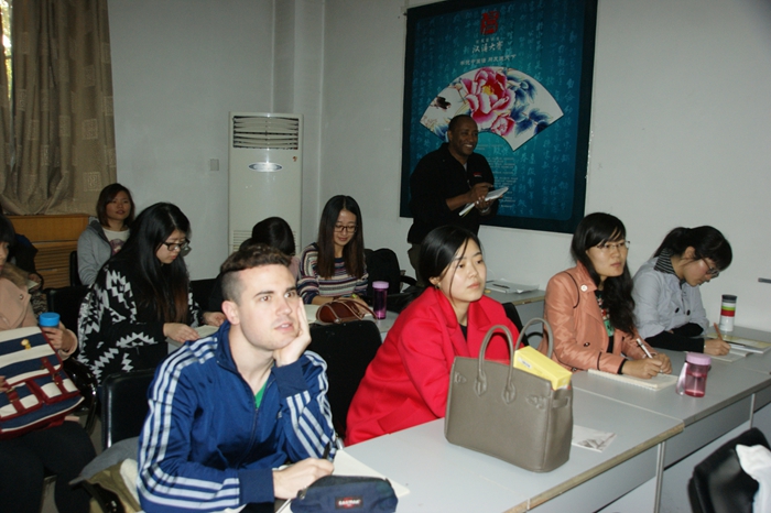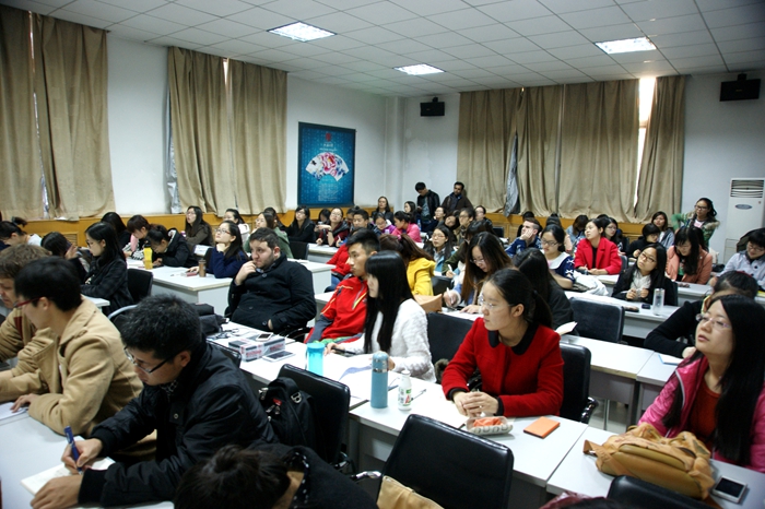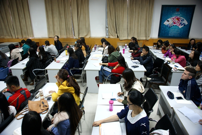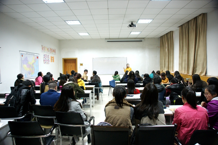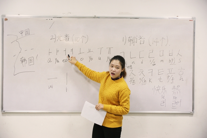 课堂上,崔先咏为大家讲解了韩文的发音和拼写规则,并解答了大家对于韩国人及韩国文化的种种疑惑。在讲到中韩文化差异时,崔先咏和在场师生分享了自己初来西安时的小故事。她说,在韩国,当你的好友乔迁新居时,朋友们会送给屋主卫生纸作为礼物,因为卫生纸在韩国文化中寓意着生活幸福,一切顺利。而当她拎着一提卫生纸到自己搬迁新屋的中国朋友家时,朋友却在临走时提醒她不要忘记带走自己的卫生纸,这让她十分尴尬。她说,虽然诸如此类因为文化差异而引发的小误会还有很多,但自己已经渐渐习惯并享受在中国生活。自高中毕业来到西安,她已经在中国生活了四年,自己现在也算是半个中国通,此次开设韩语课堂,就是希望有更多人认识韩国,了解韩国文化,避免因文化差异引发的小误会,并希望通过自己的努力,让大家感受到韩国人民的友好。