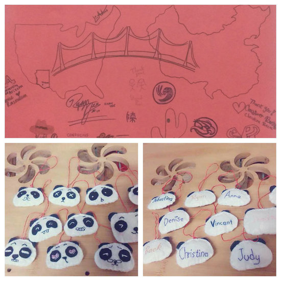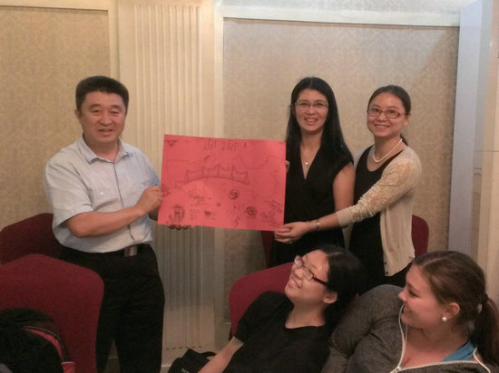 夏令营师生在欢送晚宴向公司赠送亲手绘制的中美友谊画