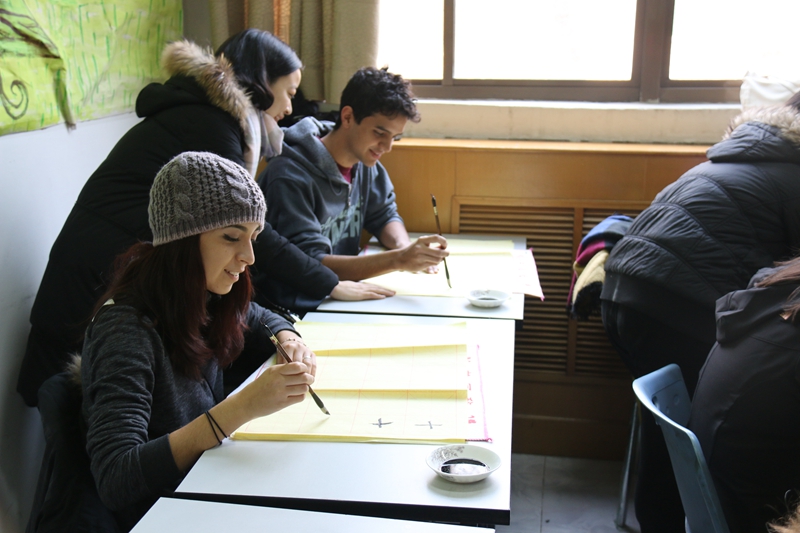 首先,来访师生与公司职工管理办公室相关工作人员进行了简单交流和互动,介绍了双方的公司概况和项目内容。会后公司为来访师生安排了历史文化讲座及中国书法体验活动。在中国员工的陪同下,美方师生体验了博大精神的中华文化和汉字魅力。