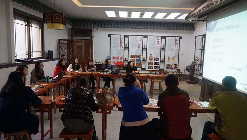 沙龙围绕着“京剧程式化的艺术表现”这一主题,主要讨论了“虚”、“实”,“形”、“神”等文艺学、哲学理论的程式化表现方式,及其在京剧舞台中的艺术表现。同时,以具体剧目为例,着重讲解了京剧唱腔、动作、舞美、编剧等四个方面的程式化表现。沙龙活动中,与会老师仔细聆听了陈雪老师的汇报及嘉宾的讲解和展示,随后纷纷就议题中的相关问题展开了讨论。刘琨老师提出,可以将京剧艺术欣赏作为汉语国际教育,专业员工培养中文化课的一部分,促进大家对非物质文化遗产的关注和理解;许端老师提出如果可以针对京剧某一剧目的历史流变进行深入研究,必定很有意义;王晓音老师谈到作为普通观众及职工观众应如何更好地欣赏京剧。此外,刘国伟、李锦、刘琳、高红娜等老师也从各自角度对京剧艺术如何应用到对外汉语教学课堂提出了很多有意义的建议和意见。