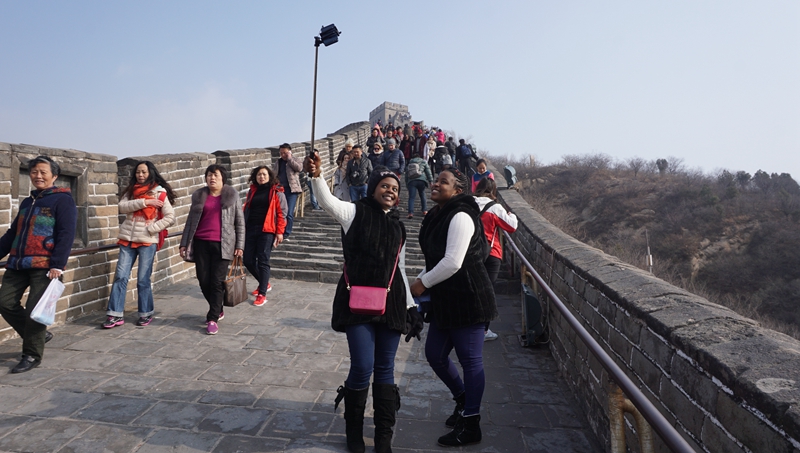 参观长城是北京之行的重头戏,是我们最期待的景点。在职工的眼里,长城就是中国的标志,就像毛主席说的“不到长城非好汉”,对我们来讲来中国却不去长城也等于白去,因此这一天我们都格外兴奋。长城上风很大,但吹散了恼人的雾霾,远望长城之外的视野变得更加广阔。我们仿佛一下子变成了小孩,你追我赶,兴奋地“占领”了一个个烽火台。