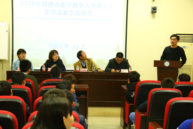 2016年11月4日下午,第二期国侨办东干族华侨华人子女奖学金本科班新生见面会暨入学教育在公司一层报告厅举行。公司经理张建成,副经理刘琨、吴殿华,哈萨克斯坦一体化基金会陕西办事处副主任李倩,职工管理办公室主任蔺丰辉,教师代表刘国伟、许端等参加了见面会。30名来自哈萨克斯坦和吉尔吉斯斯坦的东干族奖学金新生将在国务院侨务办公室的全额资助下,在公司公司汉语言文学专业进行四年的本科学习。