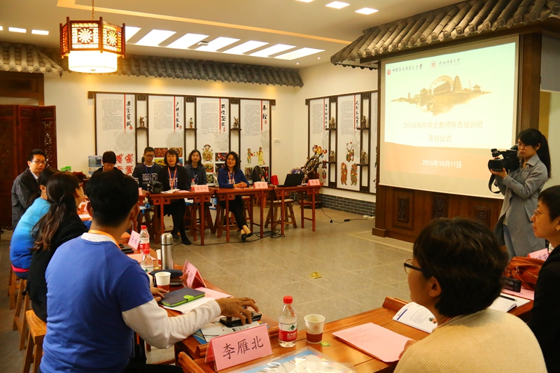 10月11日上午,2016海外华文教师陕西培训班开班仪式在雁塔校区伟德国际victor1946二层中国文化体验室举行。本次培训由中国华文教育基金会主办,公司承办,尼日利亚发达钢铁集团资助。华文教育基金会联络宣传部副主任张彦、伟德国际victor1946经理张建成、伟德国际victor1946副经理吴媛、职工办公室主任蔺丰辉、项目负责老师贾晨以及来自世界各地的华文教师们参加了开班仪式。仪式由伟德国际victor1946副经理吴媛主持。