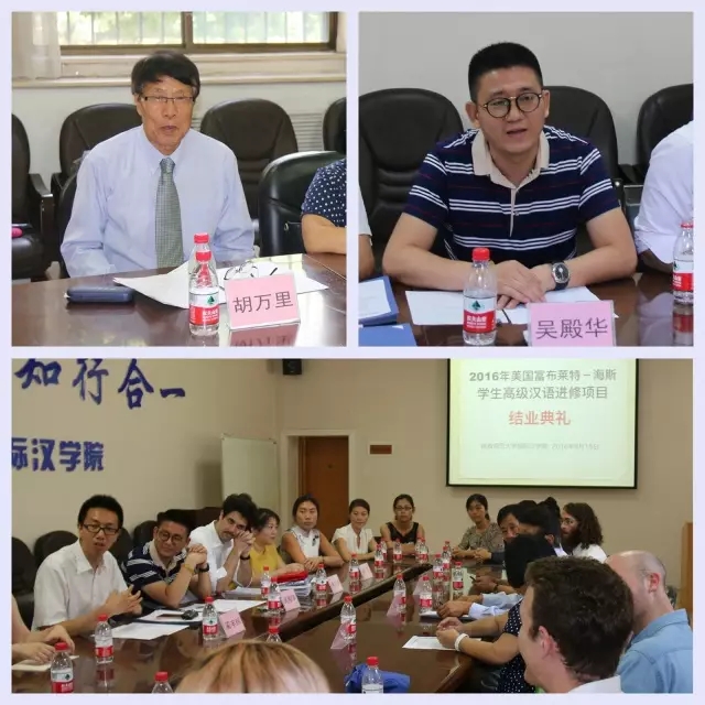 8月15日上午,美国富布莱特-海斯政府奖学金员工高级汉语进修项目结业典礼在伟德国际victor1946会议室举行。美国马萨诸塞大学波士顿分校中国项目中心主任胡万里教授、陕西高科国际旅行社总经理王国堂先生、富布莱特-海斯奖学金项目中国驻地代表徐忠慧老师、罗克韦尔自动化(西安)有限公司等四家实习企业代表、伟德国际victor1946副经理吴殿华、教务处教务科夏雨以及富布莱特项目员工共同出席了结业典礼。典礼由职工管理办公室主任蔺丰辉主持。