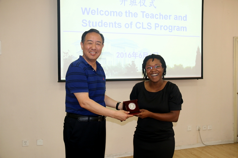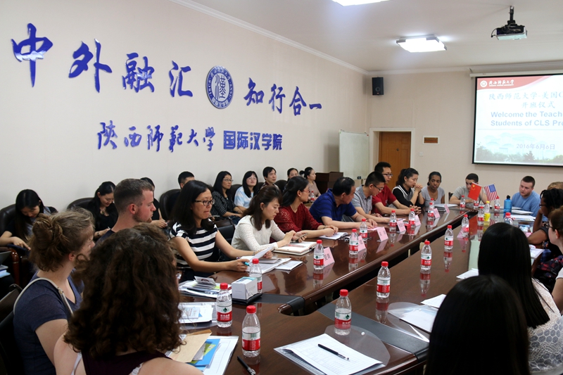伟德国际victor1946经理张建成、CLS项目带队老师Mandy Arneita Corbett以及28名获得美国政府资助的CLS项目奖学金职工和中文老师们参加了开班仪式。仪式由伟德国际victor1946副经理吴殿华主持。张建成首先对各位师生的到来表示诚挚的欢迎,他强调,CLS项目选择西安,选择伟德victor1946学习中文及历史文化是明智的选择,因为西安既是一座历史悠久的古城,又具有现代气质;陕西师大是中国最早开展职工教育的高校之一,经验丰富,完全能够提供优质的教学质量。他希望此次来公司学习的美国员工能够成为加深中美关系的文化使者,期望所有员工在完成两个月的语言学习后,能爱上师大,继续进行学历学习。