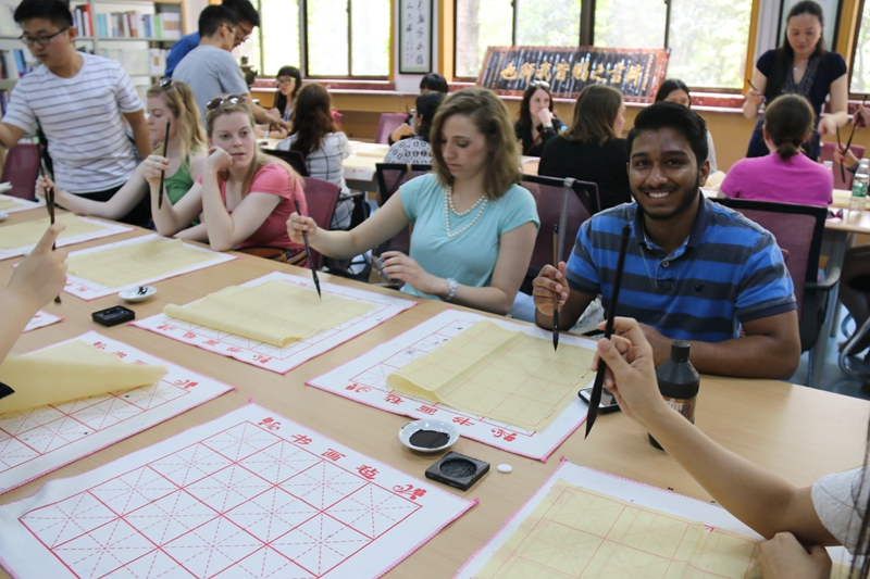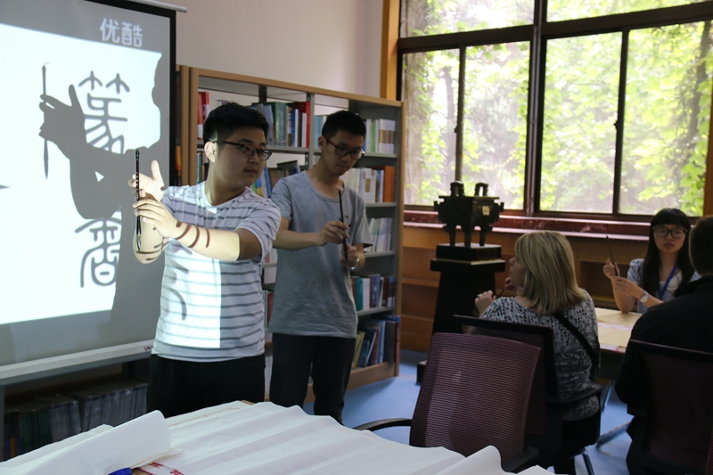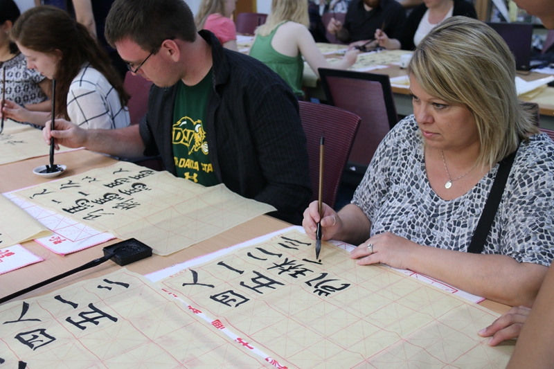5月19日上午,公司员工社团五洲汉韵在二层阅览室接待了来中国游学的美国北达科他州立大学师生,为他们展示了一堂精彩的中国书法艺术体验课。