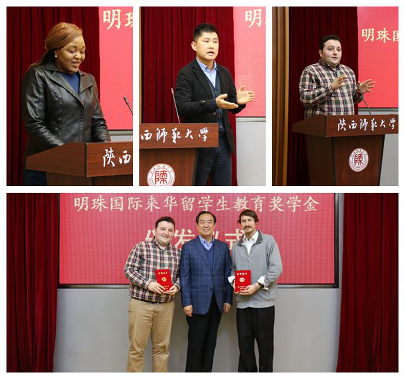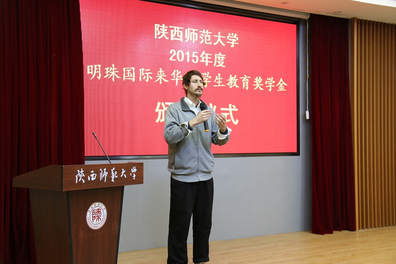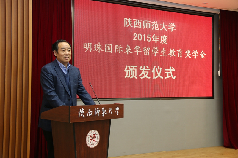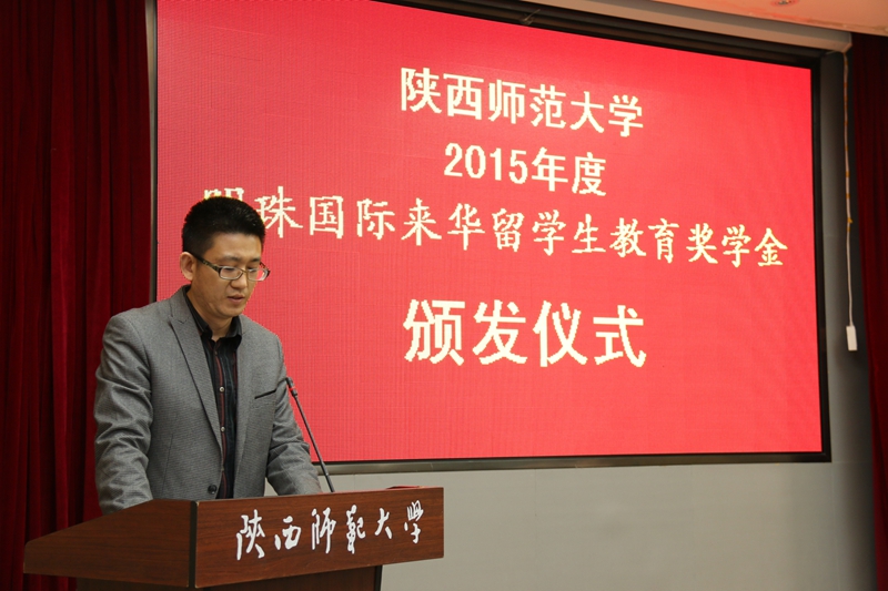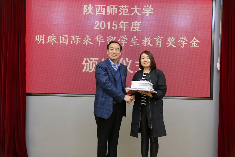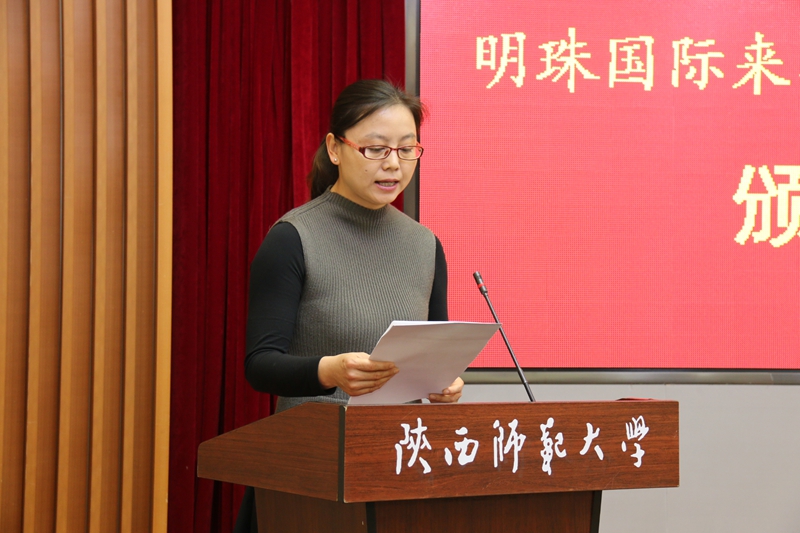李萌代表明珠国际集团发表奖学金资助感言。她说,明珠国际集团自成立以来,一直秉承着热心奉献社会的企业文化精神和关心教育事业社会责任担当,先后在伟德victor1946设立了“明珠国际职工教育奖学金”和“自强之星—明珠国际奖”。两个奖项的设立,不仅体现了明珠国际集团与陕西师大之间深厚、不可替代的友谊,也为校企之间开展更深广的合作搭建了桥梁。俗话说,滴水之恩当涌泉相报。希望今天获奖的职工能够好好珍惜把握在中国学习深造的机会,勤奋学习,积极进取,拓宽自身在汉语和其他学术领域的学习研究,用实际行动回馈社会,回馈企业对他们的资助和关爱。