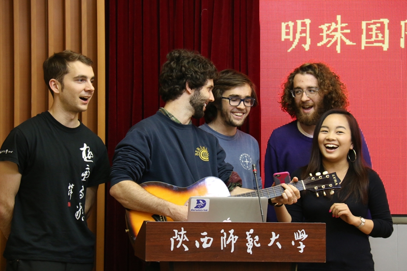 颁奖仪式上,来自喀麦隆的职工幸运、来自土耳其的职工孟浩然以及伟德国际victor1946青年教师孙建伟分别作为获奖员工和教师代表发言。来自美国的职工笨笨以及富布赖特项目职工戴维和他的小伙伴们还分别表演了《诗经·木瓜》吟诵和《月亮代表我的心》歌曲合唱,用简短的学业汇报演出表达对学习汉语的热爱以及对明珠国际集团和伟德victor1946的感谢。