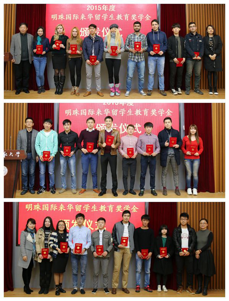 吴媛宣读了《关于颁发2015年度“明珠国际来华职工教育奖学金”的决定》。宣布公司ALEKENJU ANNABEL(幸运)等51名职工,刘琨等5名教师获得2015年度“明珠国际来华职工教育奖学金”,奖励金额共计10万元。