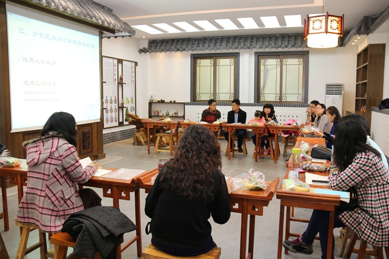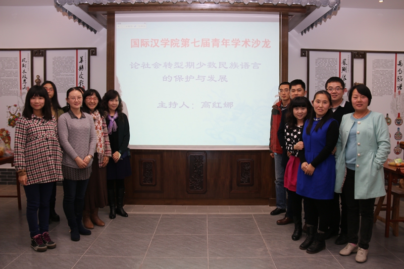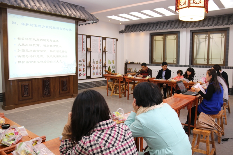 沙龙围绕着“论社会转型期少数民族语言的保护与发展”这一主题,主要讨论了在当前中国经济政治改革进一步深化的社会转型期,保护与发展少数民族语言的重要性,少数民族语言所面临的一些问题,并探讨了少数民族语言的保护与发展的一些对策。沙龙活动中,高红娜老师先就题目进行了汇报,随后大家纷纷就议题中的相关问题展开了讨论。王晓音老师提出就具体的某一种少数民族语言进行调查会挖得更深;曾小梦老师就普通话推广与少数民族语言的保护之间的关系问题与大家进行了探讨;刘国伟老师与贾泽林老师则从濒危语言保护角度提出了一些建设性意见;刘琳老师补充了民谣、民歌等艺术形式等也应属于民族语言保护的范畴。此外,其他的老师与同学也积极发言,提出了很多有意义的建议和意见。