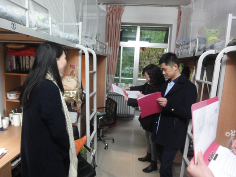 11日,老师们分别检查了2012、2013级女生公寓的宿舍安全卫生情况,一到宿舍楼内,同学们都提前主动站在宿舍门口,以饱满的热情和积极的态度欢迎检查小组的到来,这样的氛围深深感染了到场的每一位老师。他们认真细致的查看同学们日常用品的摆放,检查屋内电线电路等,并不时询问同学们有关学习生活、卫生安全、用水用电等方面的问题,对发现的问题及时提出指导意见,叮嘱同学外出时在关好寝室门的同时也要注意阳台安全。宿舍内不时传来阵阵欢声笑语,整个活动现场洋溢着亲切和谐的气氛。