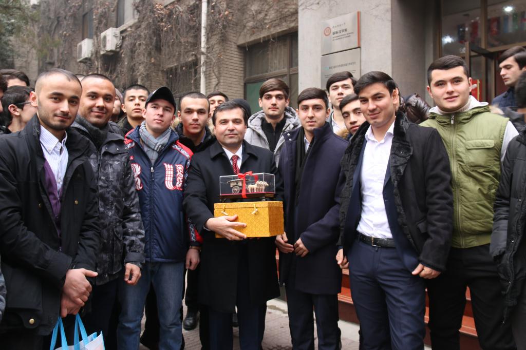 随后帕尔维兹.达夫拉特佐达大使先生发表讲话,首先感谢张经理及公司为塔吉克斯坦职工们的关心和照顾。他指出,积极参与到一带一路建设中的塔吉克斯坦当前正处于国家经济腾飞阶段,近些年来塔吉克斯坦共和国的GDP稳定保持在7%左右增长。塔吉克斯坦自1992年与中国建交以来,两国关系积极、健康、稳步向前发展,塔中两国不仅互为友好邻邦,也是重要的战略合作伙伴,塔中两国在政治、经济、文化等领域都有广泛合作。就教育领域而言,来华留学的塔吉克斯坦籍员工已由最初的50余人发展至当前的3300余人,来华留学已经成为塔吉克斯坦员工的优先选择方向之一。大使先生同时强调,国家的发展、两国的友谊不仅依靠两国元首及政府之间的努力,更重要的是在于两国民众之间的相互交流、学习、融通,尤其是青年员工之间开展的文化交流活动。希望在华学习的塔吉克斯坦职工们珍惜宝贵机会,把握青春,规划人生,利用好公司、公司提供的各项有利条件,刻苦学习中国文化和知识,努力提升专业技能,并能积极参与到国际员工联合会中,在锻炼自我的同时积极展示塔吉克斯坦的国家形象,努力使自己成为国家建设的有用人才,积极推动两国关系向更深层次发展。大使先生殷切叮嘱在座所有要入乡随俗,遵守中国的法律法规和公司的各项规章制度,努力学习的同时要照顾好身体,多与家人联系。参加座谈会的塔吉克斯坦职工们就开展员工文体活动等问题与大使先生做交流,座谈会在欢乐的氛围中结束。会后,张华经理与达夫拉特佐达·帕尔维兹大使先生互换礼物并合影留念。