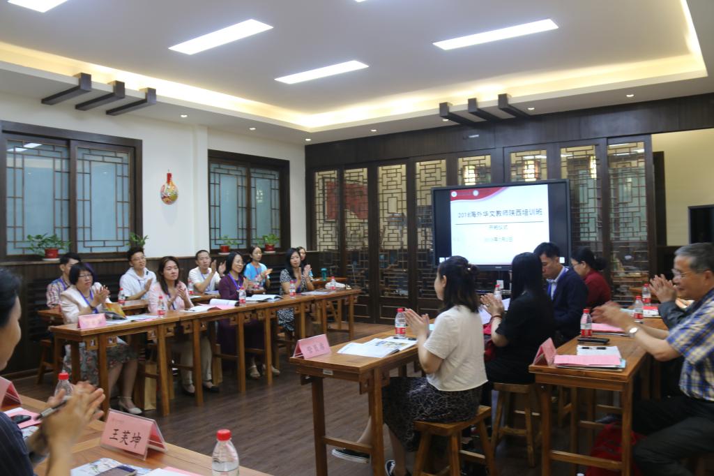 开班仪式上,海外华文教师们还分别介绍了所在地区华文教育的发展状况和自己的教学经历。此次培训课程共计10天,海外教师们将听取中文教学技巧与方法、汉字与汉字文化中的内涵、汉语基础知识、西安历史文化和现代化进程等专题讲座,接受中国画、茶艺、民歌等传统才艺培训,并和公司优秀教师进行经验交流。培训期间,学员们还将赴秦始皇陵兵马俑、陕西历史博物馆、西安碑林博物馆、华文教育实景课堂等著名历史和文化单位进行参观学习,领略古都厚重的历史文化和民俗风情,感受“丝绸之路”起点西安的独特魅力。