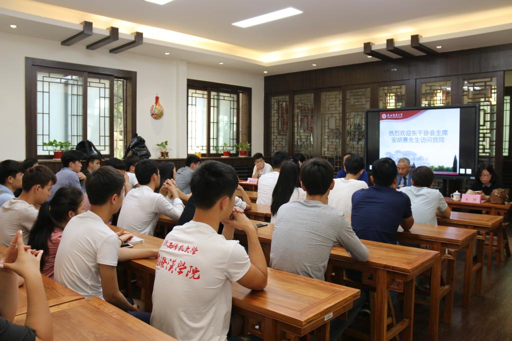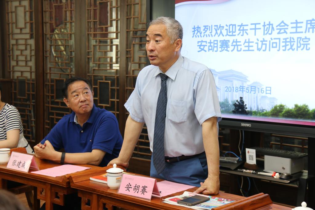 张建成经理对安胡塞主席一行到访公司表示热烈欢迎。他向在场师生介绍说,安主席作为地地道道的陕西乡党,近年来为促进中哈两国高层互访、经济贸易往来、文化教育交流等方面合作做出了卓越的贡献,已促成千余名东干族员工到中国学习,为多个中国企业赴中亚地区发展牵线搭桥。张经理勉励在座员工,要珍惜今日这来之不易的学习机会,把握“一带一路”倡议带动下中国与中亚地区多方面合作日益紧密的大好时机,时刻铭记自己作为东干族员工肩负的文化使者的责任与使命,在校期间努力学习成材,不辜负时代、不辜负远在中亚的家人朋友对他们的期许和厚望。