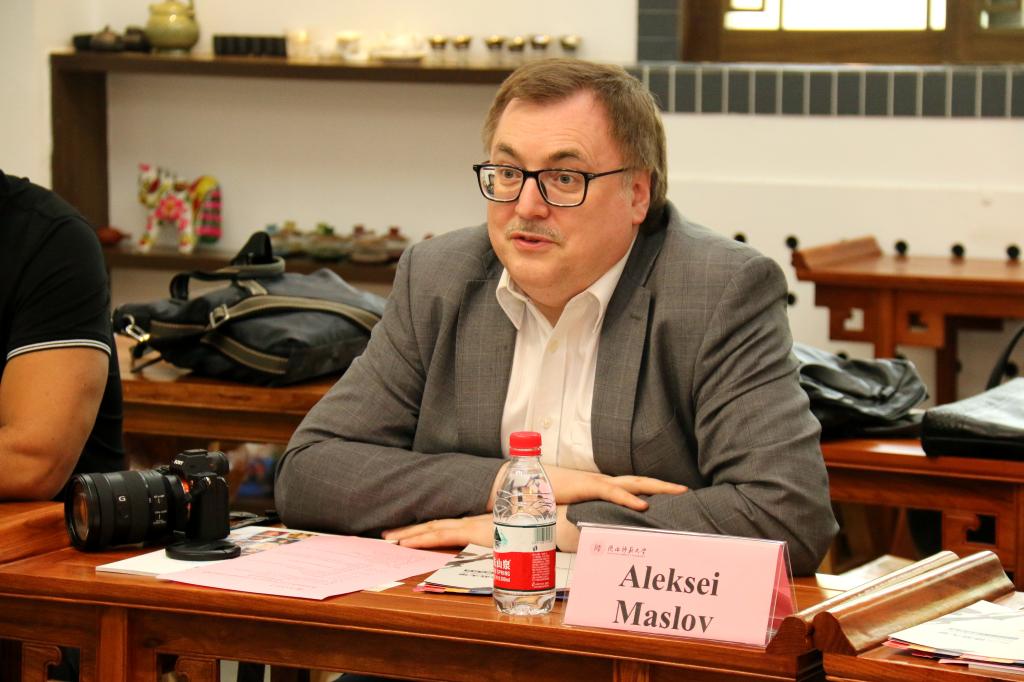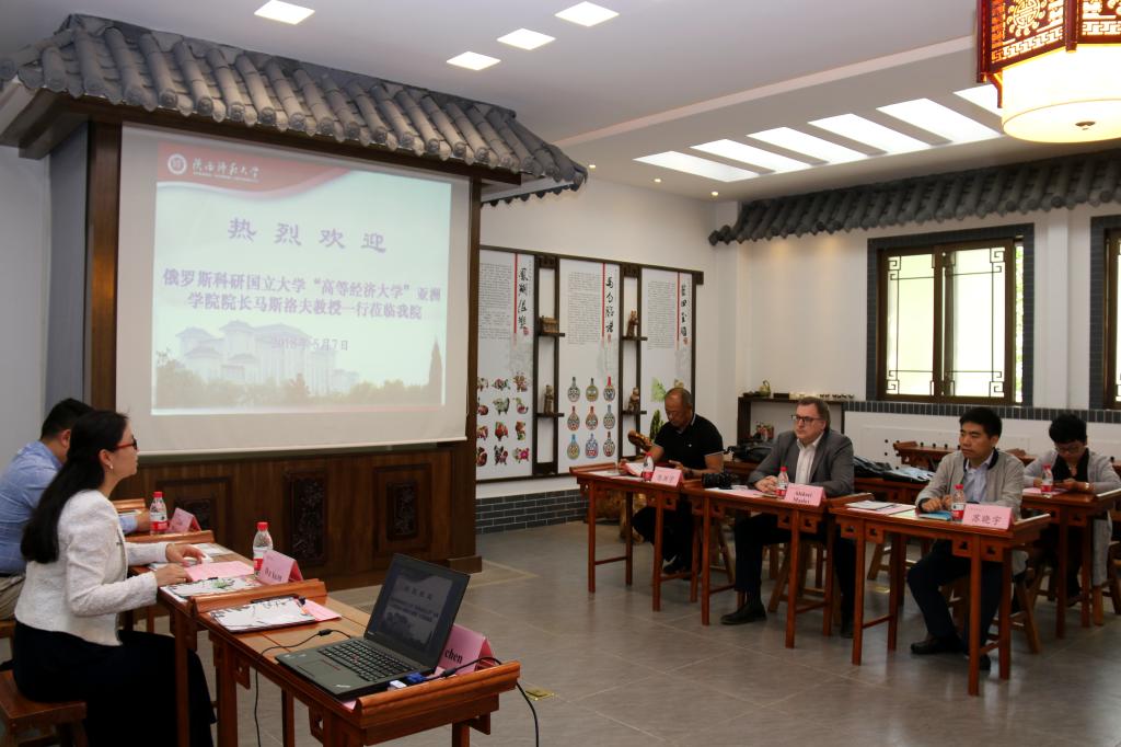马斯洛夫教授简要介绍了俄罗斯高等经济大学的历史沿革及办学情况,他表示,随着中国“一带一路”倡议的不断推进,横跨亚欧两大洲的俄罗斯与中国之间的交往日益密切,两国之间的商贸合作项目增加、旅游市场不断发展壮大,越来越多的俄罗斯人开始学习汉语,汉语及中国文化在俄罗斯文化生活中扮演了越来越重要的角色。马斯洛夫教授介绍说,近年来俄罗斯高等经济大学已经与北京师范大学、上海大学、复旦大学等中国高校开启了校际合作交流,积累了一定的合作经验,公司希望继续开拓中国职工市场,积极探索与中国高校的合作培养模式,开展更多互利共赢的合作项目。他表示,通过近期与伟德victor1946师生的沟通交流,他对公司的教学质量非常有信心,期待日后与伟德victor1946在汉语教师团队培训、员工互换、短期项目合作、员工海外实习基地建设等方面开展更为深入的交流。