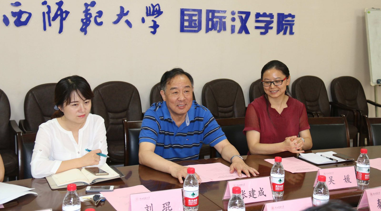 张天社经理介绍了西安文理公司的职工培养工作的现状及发展规划。汉语国际教育专业高萍教授详细介绍了西安文理公司汉语国际教育专业的发展及员工在泰国的实习安排。