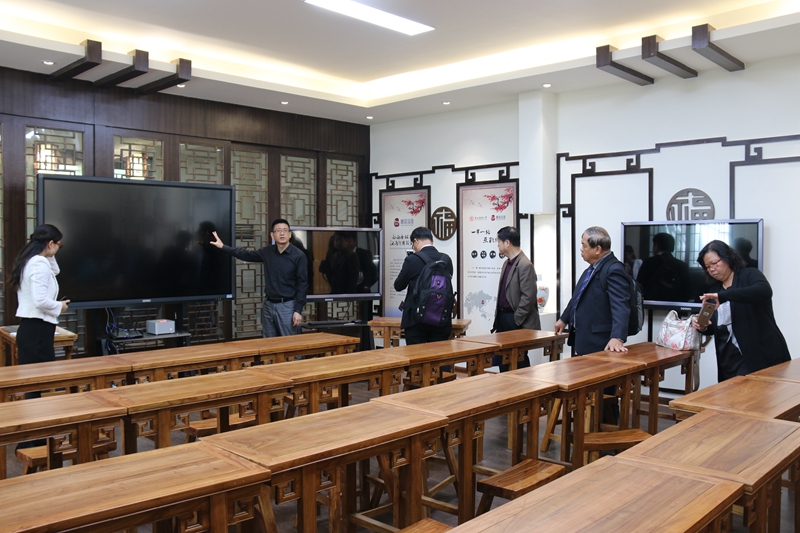 座谈会上,马来西亚沙巴独中董总访华团还就来华职工奖学金、学历生来校就读要求及申请办法、短期项目合作方式等问题与公司工作人员进行了深入交流。会后,副经理吴媛和吴殿华带领考察团一行参观了公司中国文化体验室、多功能室、唐风汉语互联网教室等特色教学场所。
