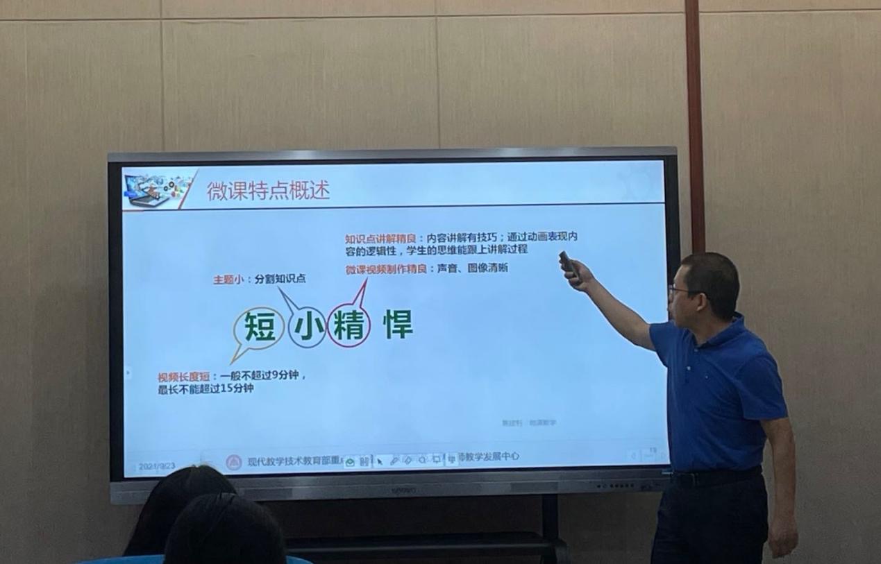 接着,何聚厚重点介绍了微课设计的特点和要求,从视频时长、教师语言语速、语言表达方式使用、教学设计等方面给出了详细的微课设计建议。他将微课设计的特点概括为“短小精悍”四个字:“短”是指视频时长短,一般不超过9分钟;“小”指主题小,分割知识点;“精”的含义包括知识点讲解精良和微课视频制作精良;“悍”意为学习效果好,能够激发员工学习兴趣和动机。