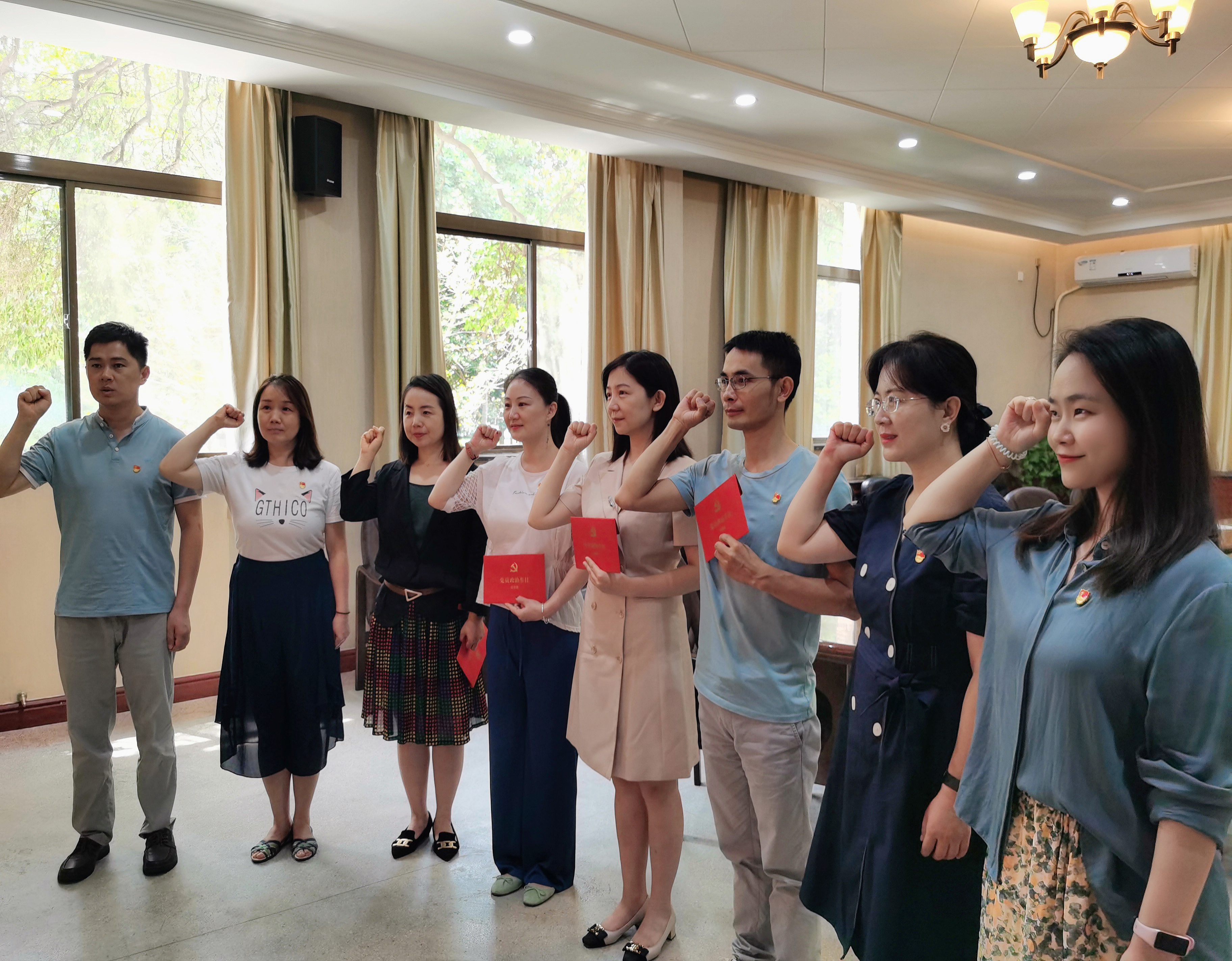 在接下来的座谈环节,四位过政治生日的同志纷纷发言,回顾入党初心和成长点滴,表达了激动的心情。刘琳同志分享了在个人成长过程中身边的优秀党员带给她的帮助和激励,让她在工作生活中始终坚持初心,明确努力方向;田志华回忆了高考前入党的激动瞬间,谈到了个人命运的”偶然““微不足道”,以及无数个个人汇聚成一个有信仰群体的“必然”与“众志成城”,同时也表达了对组织为党员过政治生日,为党员信念“加油、充电、补钙”的感谢;曾柱同志通过回忆家庭带给他的政治熏陶和信仰力量,表达了要做模范践行誓词、忠诚捍卫党章的合格党员的决心;张喆同志分享了在疫情期间周围环境纷扰的情况下,是党员的身份和立场让她坚定对党的无比信心,提升了个人政治修养。
