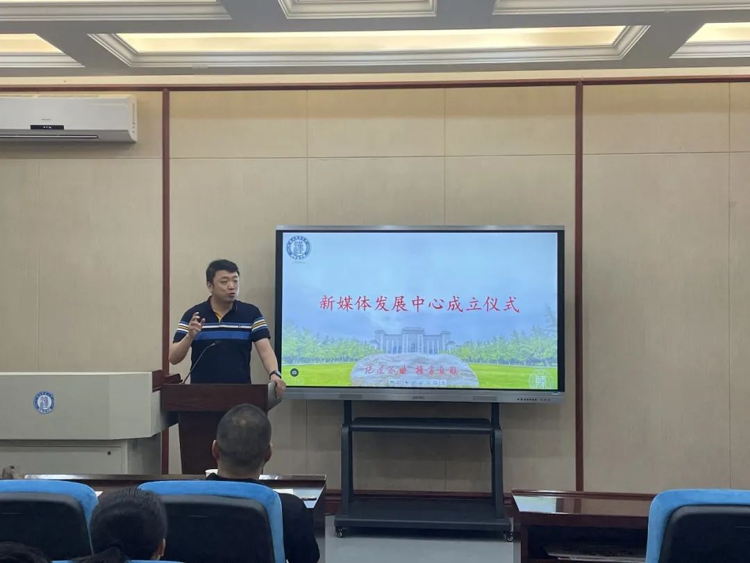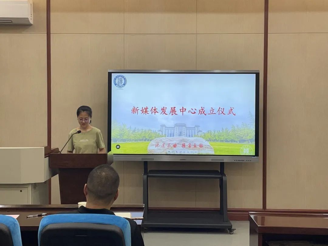 会议第三项开展新媒体发展中心成立仪式,新媒体发展中心负责人任娟对工作进行未来规划和展望。