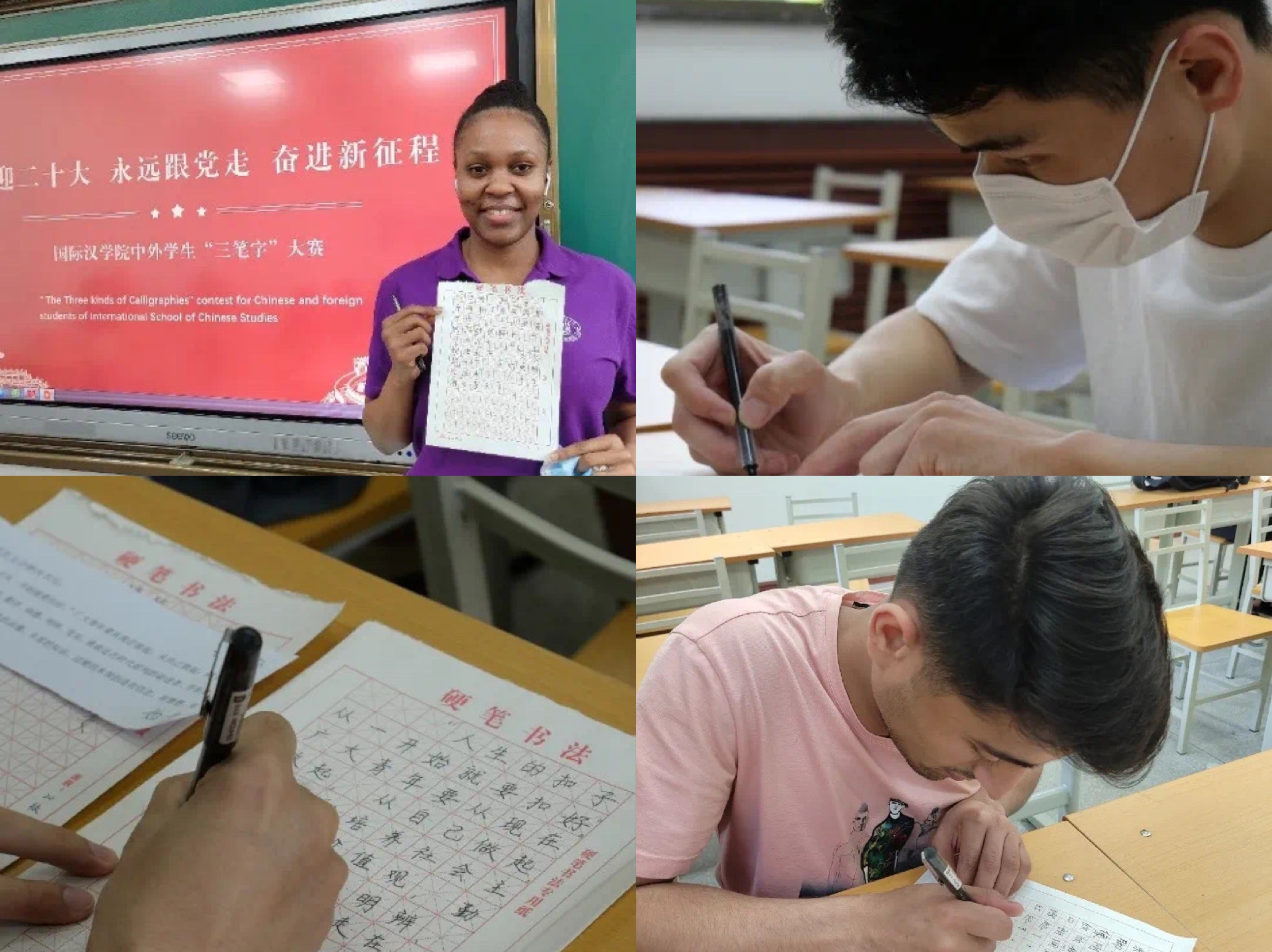 4月27日,“三笔字”大赛在公司唐风汉语教室启动,活动得到院内中外员工的广泛参与。大赛书写内容主要选自《习近平与老员工朋友们》及中国古诗词。