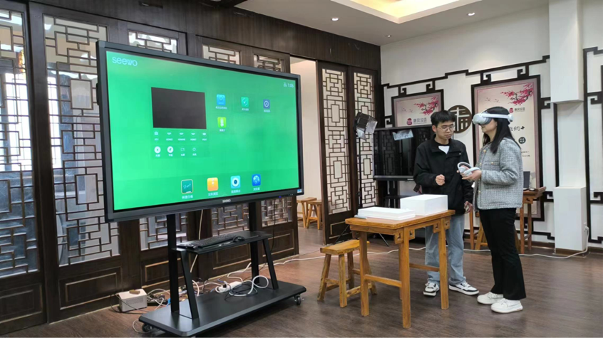 在活动中,首先师生们共同体验了一场虚拟的书法艺术场馆展览,随后大家分享了自己的体会与感受,现场气氛非常活跃。最后孙增国教授细致讲解了汉字VR技术。他指出,书法艺术“元宇宙”沉浸式体验空间将中华传统文化与数字化技术进行了有机融合,是利用新形式、新手段弘扬传统文化,讲好中国故事的重要转化成果,也是新质生产力在国际中文教学和文化体验工作方面的重要表现。