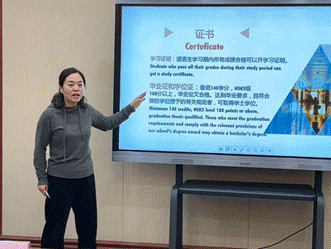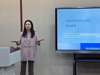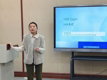 随后,公司招生办公室和学工组相关负责老师分别展开详细讲解。张丽老师对职工教务进行了全面说明,让员工们清晰了解课程安排、学业要求等关键内容;畅晓梅老师为员工们准备 HSK 考试提供了重要指导;马艺玄老师聚焦签证办理问题,对签证种类、延期流程以及临时住宿登记表的相关事宜进行讲解;刘美君老师介绍了公司的本科和研究生学习项目;欣元老师特别强调了安全教育的重要性。他从交通安全、预防诈骗、非法就业以及校园活动等多个方面进行讲解;职工管理干部赵晓越讲解了宿舍区域注意事项、处罚制度以及校外住宿注意事项,使员工们对住宿相关规定有了清晰认知。